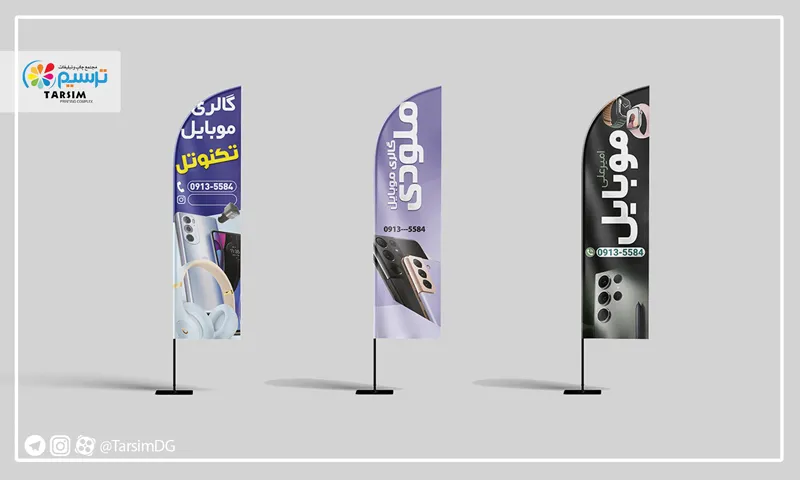 چاپ پرچم ساحلی برای موبایل فروشیها و مراکز تعمیرات موبایل، نهتنها جلوهای حرفهای به فضای کاری شما میبخشد، بلکه بهعنوان یک نشانه تبلیغاتی برجسته، افراد بیشتری را به سمت کسبوکار شما جذب میکند. با استفاده از طرحهای خلاقانه و حرفهای که با برند شما هماهنگ هستند، میتوانید اطمینان داشته باشید که پرچم ساحلی شما تاثیر مثبتی بر ذهن مشتریان خواهد گذاشت.