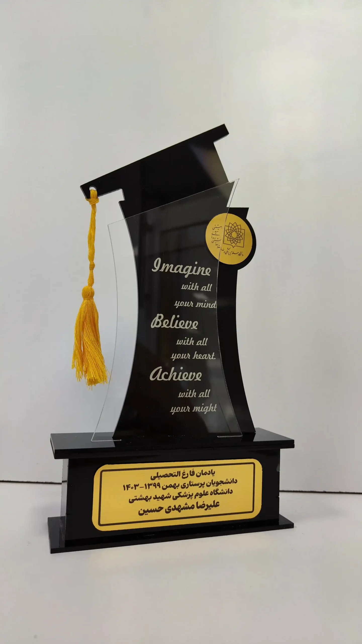 تندیس فارغالتحصیلی با طراحی فاخر و الهامبخش، یادبودی ارزشمند برای دانشجویی.