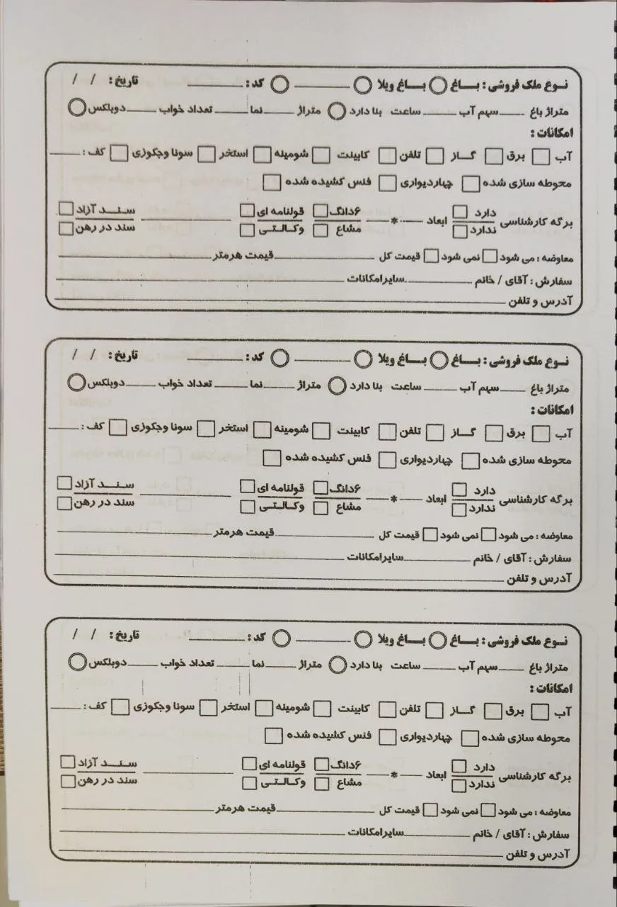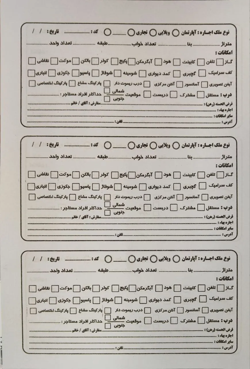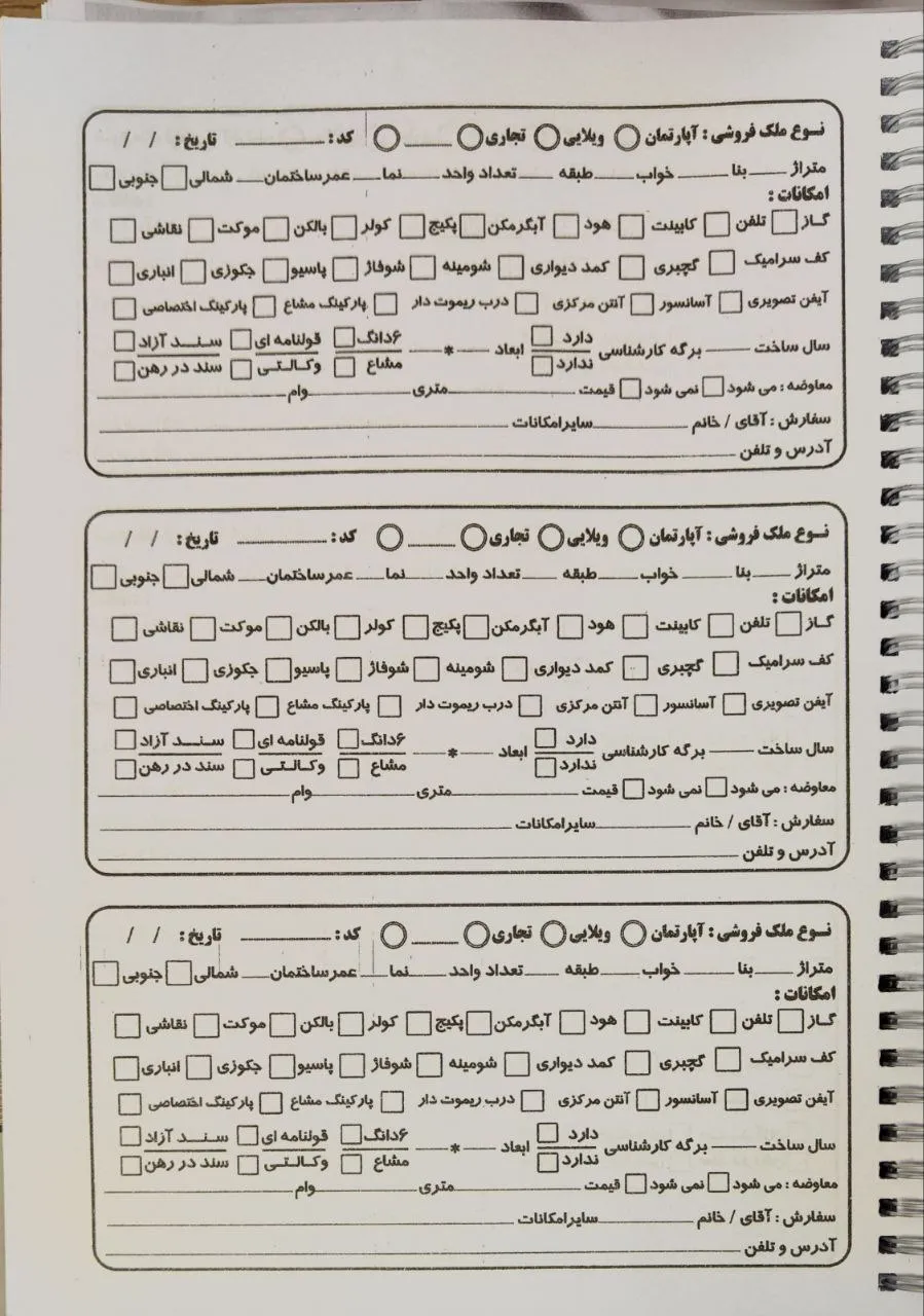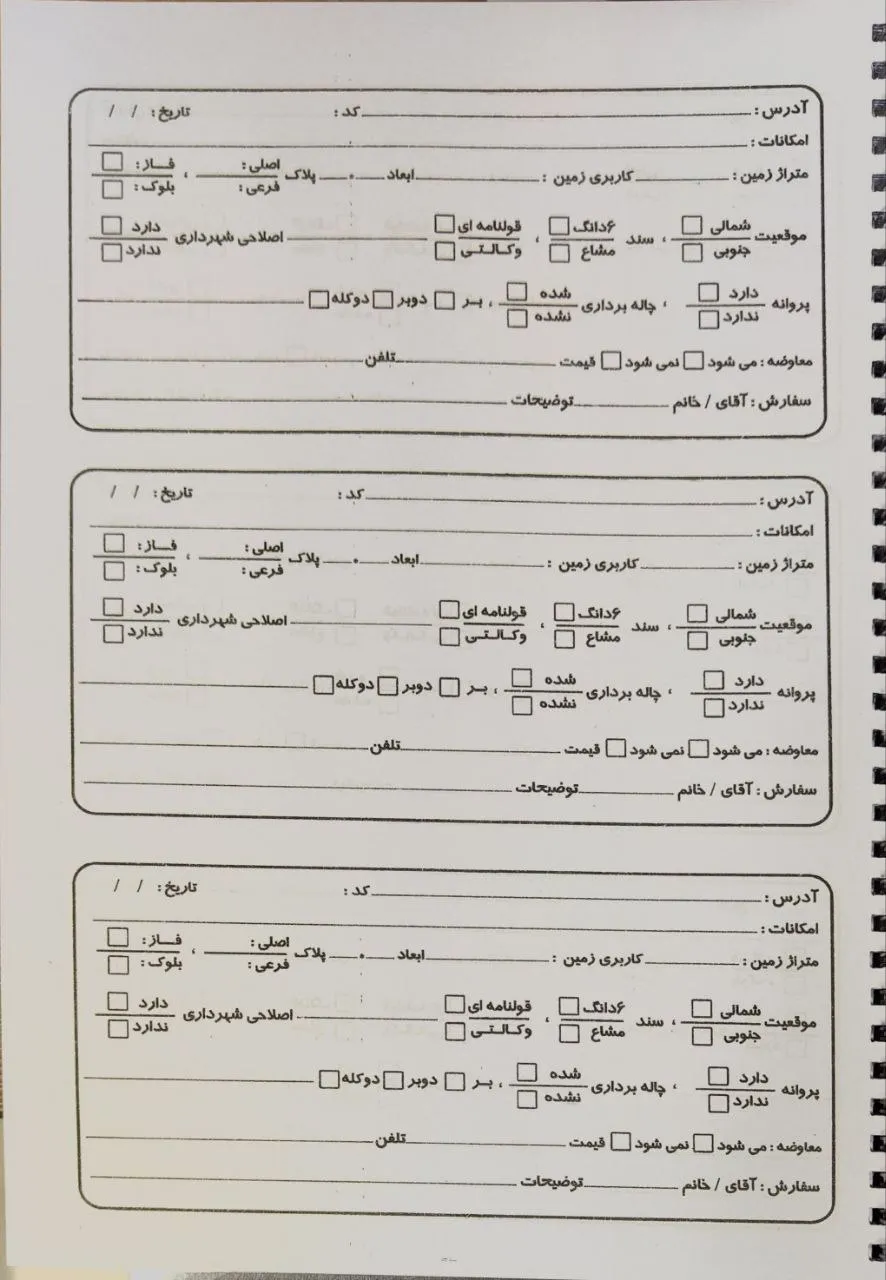 این دفتر یک راهکار حرفهای برای مدیریت فایل املاک و افزایش نظم در ثبت اطلاعات است. با استفاده از این دفتر، دیگر نیازی به جستجوهای وقتگیر بین برگههای پراکنده یا فایلهای کامپیوتری ندارید. طراحی آن به گونهای است که هم برای مشاوران تازهکار و هم برای دفاتر باسابقه قابل استفاده و مفید است.